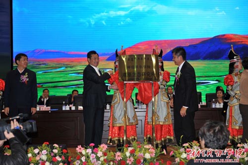 2012年10月12日,由我公司與呼倫貝爾學(xué)院聯(lián)合建立的呼倫貝爾草原生態(tài)研究院正式成立。董事長(zhǎng)王召明參加了揭牌儀式,并致賀詞。