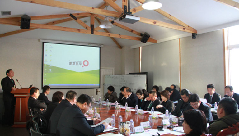 12月10日,蒙草抗旱新起點2012工程系統(tǒng)特訓(xùn)營的室內(nèi)課程培訓(xùn)正式開始。在早晨6點半到7點半的早訓(xùn)之后,上午8點30分在黨校主樓230教室由