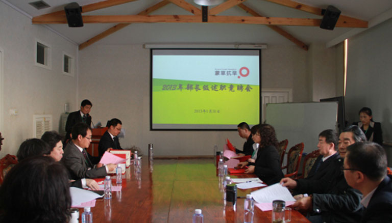 2013年1月26-27日,蒙草抗旱在公司三樓會議室舉行2013年述職競聘會,此次競聘會設(shè)置了公司職能部門和工程系統(tǒng)的副總監(jiān)級以上的33個崗位